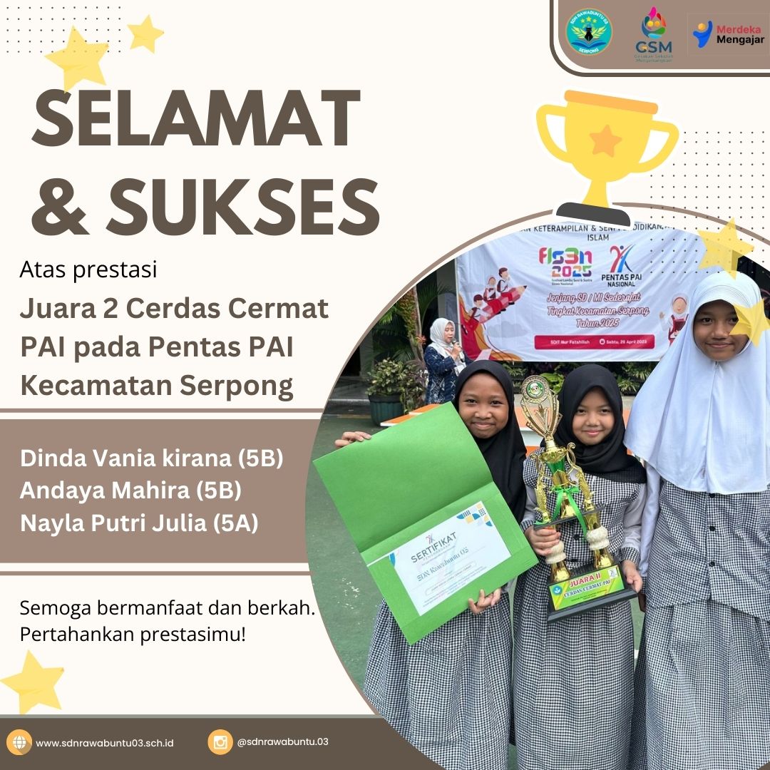 Prestasi SDN Rawa Buntu 03 Tahun Ajaran 2024 – 2025.